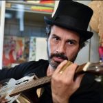 il nostro maestro delle corde, con il suo cappello nero e la sua resonator guitar, è il suono graffiante che guida il sound della band