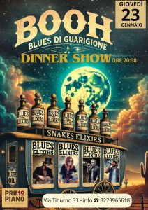 BOOH arriva al Primo Piano e vi porta dritti al cuore del blues con un evento unico, dove le note e i sapori si intrecciano per una serata indimenticabile. Faccia a faccia con il blues, BOOH non si limita a suonare: vi racconta storie, emozioni, e un pizzico di ironia che trasforma ogni canzone in un viaggio.