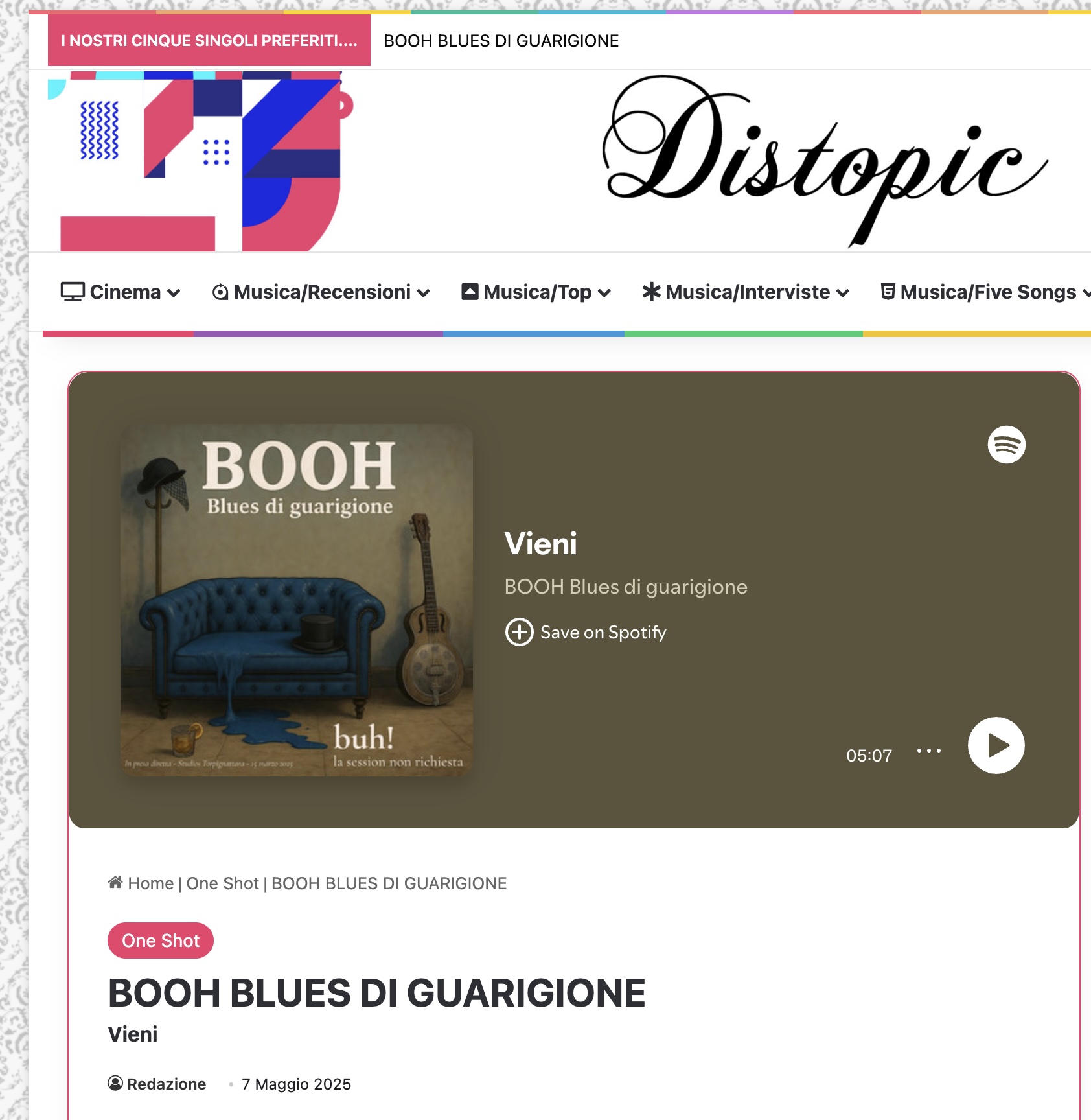 Siamo felici di condividere con voi la prima recensione di Vieni, uno dei brani più introspettivi del nostro album Buh! La session non richiesta, apparsa su Distopic.it.